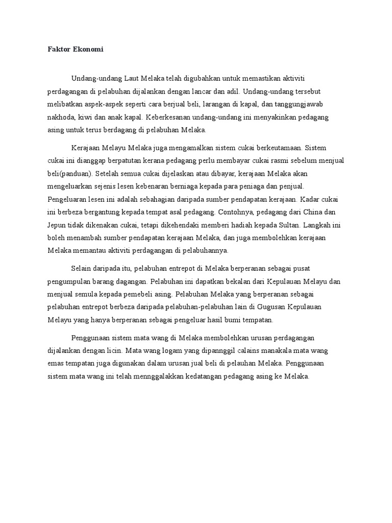 Kegemilangan Melaka Faktor Ekonomi Dan Politik Pdf