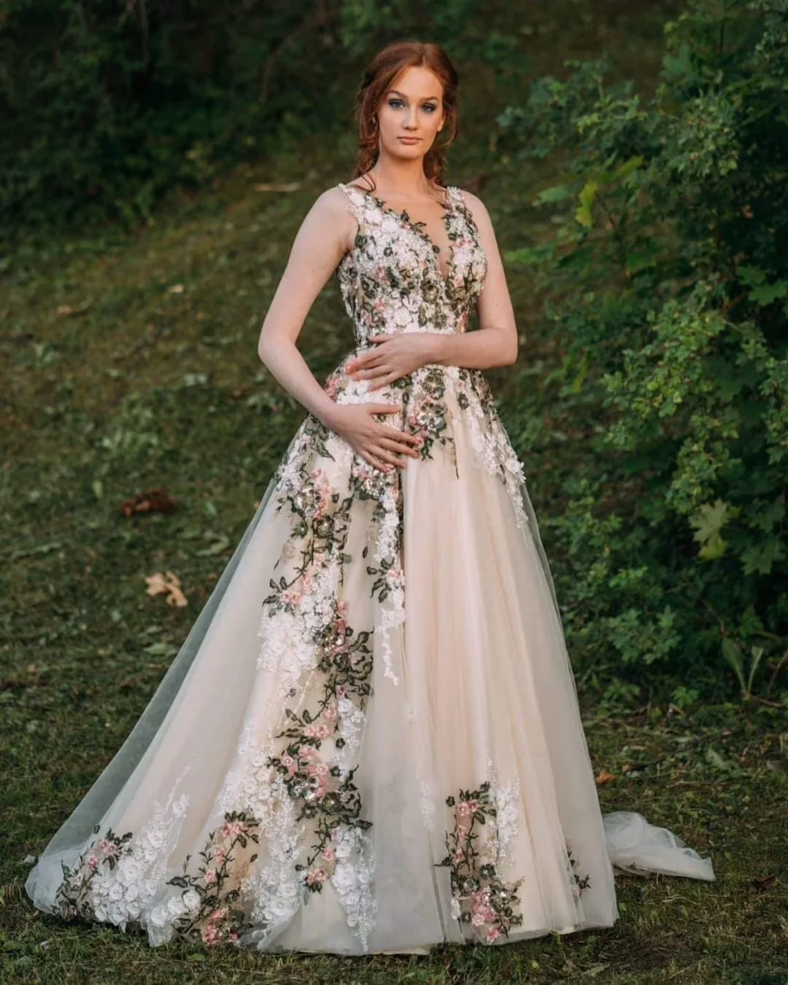 . Forest Themed Wedding Dresses. - Appliques only decorate below marked portion on bodice. 37 Woodland Wedding Dresses To Look Like A Forest Nymph Woodland Wedding Dress Bohemian Wedding Dresses Delicate Wedding Dress Our Favorite Colorful Dresses From Real Weddings Forest Wedding Dress Colored Wedding Dresses Enchanted Forest Wedding Dress.