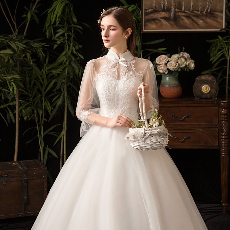 Beaunique High Neck Collar Ribbon Floral Transparent Forest Theme Garden Tulle Wedding Dress Bride White Bridal Gown Shopee Malaysia